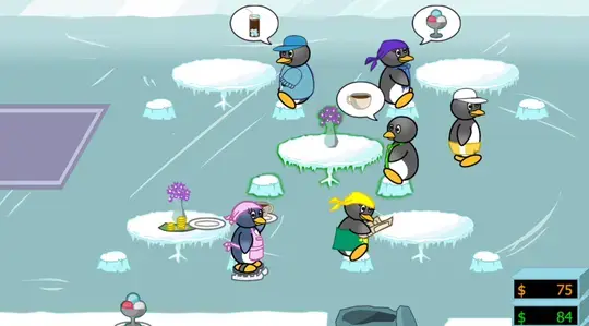 Die Kunden kommen vor dem Restaurant an. Klicken Sie darauf und dann auf einen leeren Tisch, um sie zu platzieren. Wenn ein Kunde zum Bestellen bereit ist, hebt er seinen Flipper. Klicken Sie darauf und sie geben ihre Bestellung auf. Die Küche beginnt mit der Zubereitung des Essens und sobald es fertig ist, erscheint das Gericht auf der Theke! Klicken Sie auf das Gericht und bringen Sie es zum Kunden. Lassen Sie sich nicht zu lange Zeit, sonst wird der Kunde ungeduldig und geht.