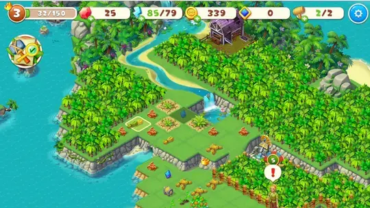Beseitigen Sie Trümmer von der Insel, um mehr Platz zu schaffen und neue Ressourcen freizulegen. Das Entfernen einiger Gegenstände wie Büsche und Unkraut von der Insel kostet Energie. Wenn Ihnen die Energie ausgeht, müssen Sie warten, bis Sie weitere Dinge erledigt haben, oder sich eine Werbung ansehen, um neue Energie zu tanken.