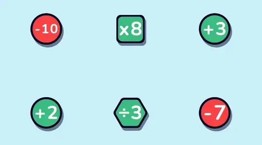 Toque y arrastre un círculo hacia otro círculo. Combinarán sus valores y formarán un nuevo círculo. Si suman 0, desaparecerán. Por ejemplo, si combinas -6 con X2, obtendrás un círculo con -12 como valor.
