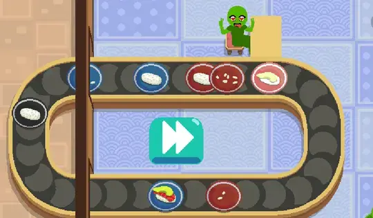 चावल में डालने के लिए एक टॉपिंग पर टैप करें, फिर उस प्लेट को कन्वेयर बेल्ट में जोड़ने के लिए टैप करें। ग्राहक से सुराग के लिए देखें जब सुशी उनके पास जाती है, तो उन्हें सही पकवान बनाएं।
