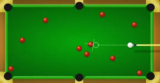 सफेद क्यू गेंद की दिशा और गति को नियंत्रित करने के लिए अपने माउस का प्रयोग करें।