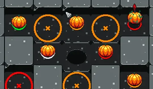Fare clic su una zucca per selezionarla, quindi fare clic su una freccia per spostarla. Puoi anche giocare con la tastiera: premi TAB per scegliere una zucca e usa i tasti freccia per spostarla. Il tuo obiettivo è spostare le zucche nei cerchi colorati corrispondenti.