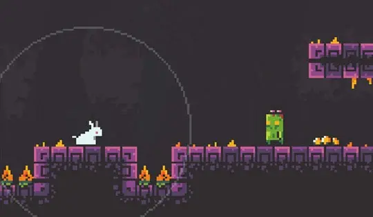 Muoviti e salta con WASD o i tasti freccia. Tieni i mostri all'interno del cerchio attorno al tuo coniglio per attirarli verso le punte. Dopo aver trasformato tutti i mostri in carote, si aprirà un portale. Raggiungi il portale per completare ogni livello.