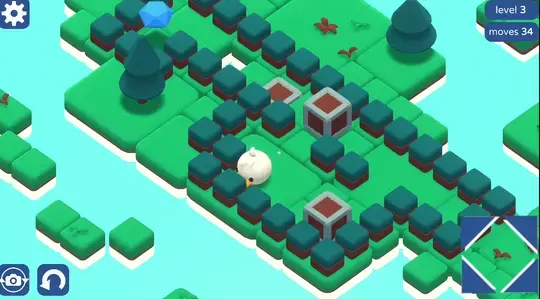 Usa i tasti freccia, WASD o fai clic sulle frecce sullo schermo per spostarti. Il tuo obiettivo è spingere le scatole nell'acqua per costruire un percorso verso il gioiello!