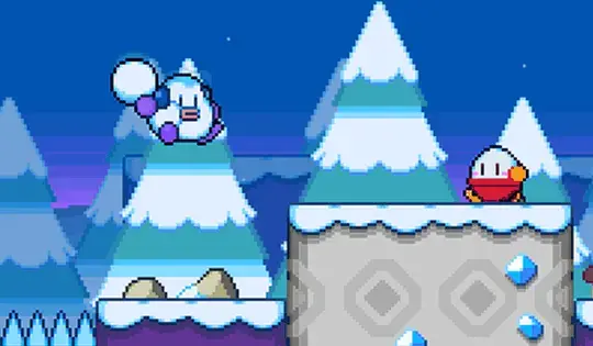 - Premi SPAZIO per lanciare una palla di neve. Se colpisci un nemico, si congelerà! Scontrati con i nemici congelati per buttarli fuori dal livello. Puoi anche lanciarli contro altri nemici per potenti combo. I nemici sconfitti lasceranno dietro di sé ghiaccioli che puoi raccogliere per ottenere punti.