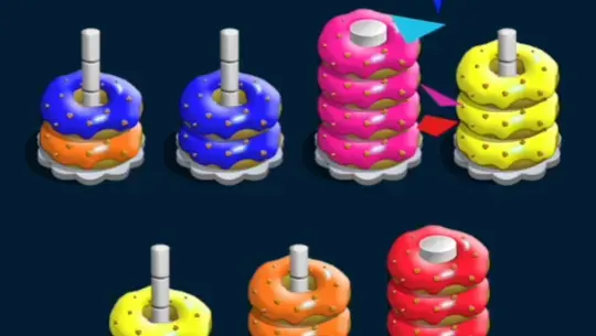 ドーナツをタップし、それを置きたいポールをタップします。あなたの目標は、フープ上のドーナツをフロスティングの色で分類することです。ドーナツは同じ色のドーナツの上にのみ積み重ねることができます。