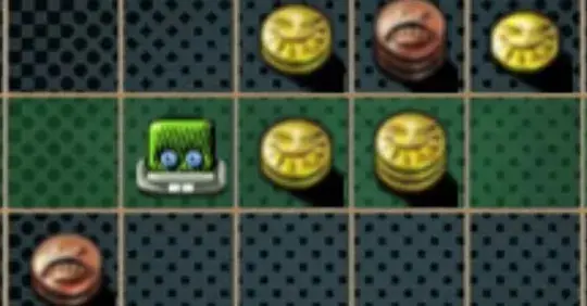 あなたは黄金のコインと呪われたコインでいっぱいの部屋のトレジャー ハンターです。毎ターン、緑のキャラクターを同じ列の正方形に移動し、そこにあるコインの山を集めます。ゴールド コイン 1 枚につき 1 ポイントが与えられ、呪われた (茶色の) コイン 1 枚につき 1 ポイントが削除されます。あなたが移動した後、対戦相手は自分の赤いキャラクターを同じ列の正方形に移動し、そこでコインを集めます。ゲーム終了時に対戦相手よりも多くのコインを持っていることを確認してください!