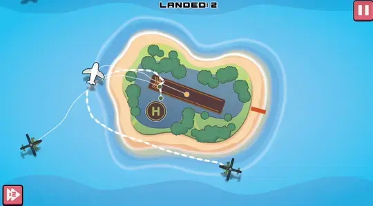 左键单击飞机或直升机并绘制一条通往正确跑道或着陆场的路径。每架飞机都需要降落在与其颜色相匹配的跑道上。每架直升机都需要降落在H圈上。确保它们不会撞上环境或其他飞机!