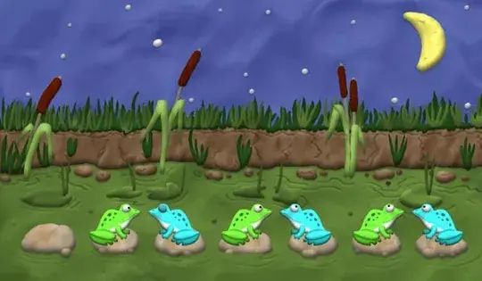 你的目标是让所有六只青蛙穿过池塘。蓝色的青蛙需要到左边,绿色的青蛙需要到右边。点击一只青蛙,让它向前跳跃一块岩石或跳过另一只蟾蜍。如果卡住,请按 RESET 按钮。